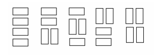 4N 크기의 타일을 21, 12 크기의 도미노로 완전히 채우려고 한다. 예를 들어 42 타일을 채우는 방법은 다음과 같이 5가지가 있다.